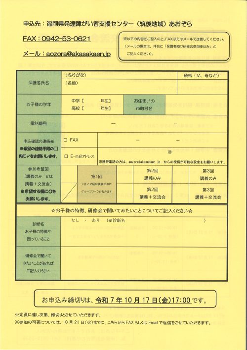 • 主催:福岡県・福岡県発達障がい者支援センター(筑後地域)あおぞら