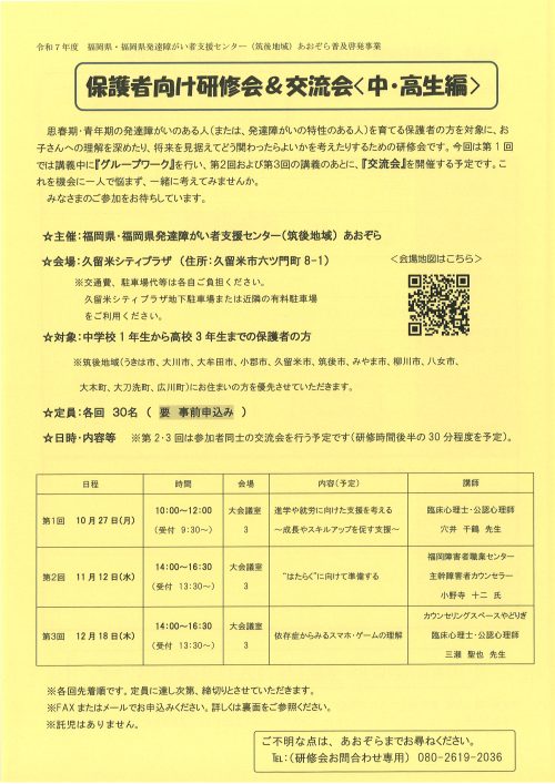 令和7年度 福岡県・福岡県発達障がい者支援センター(筑後地域) あおぞら普及啓発事業