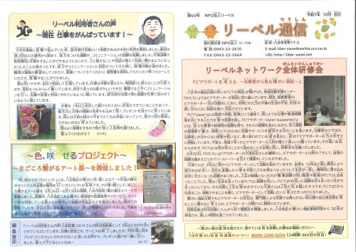リーベル通信 第60号 発行しました! リーベル通信 第60号を発行しました。 おかげさまで記念すべき60号です。いつも応援ありがとうございます(^^♪ ぜひご覧ください♡ 関連記事 « れもんぐらす『おしゃべり会』のお知らせ