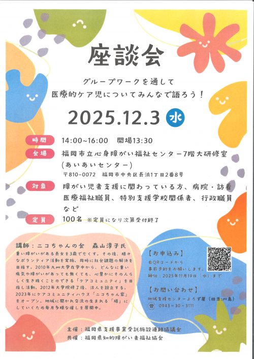【地域からのお知らせ】医療的ケア児について語ろう!