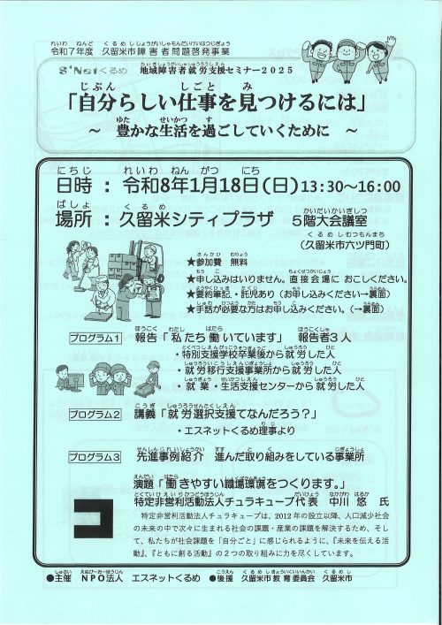 申込み・お問い合わせは、エスネットくるめ事務局までお願いします。