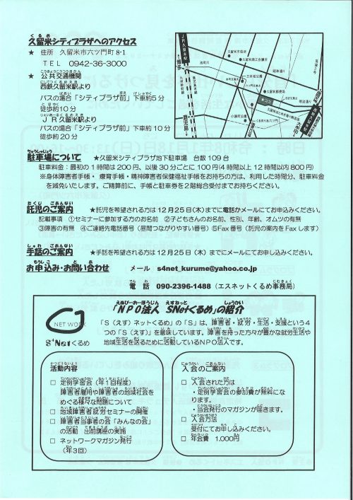 申込み・お問い合わせは、エスネットくるめ事務局までお願いします。